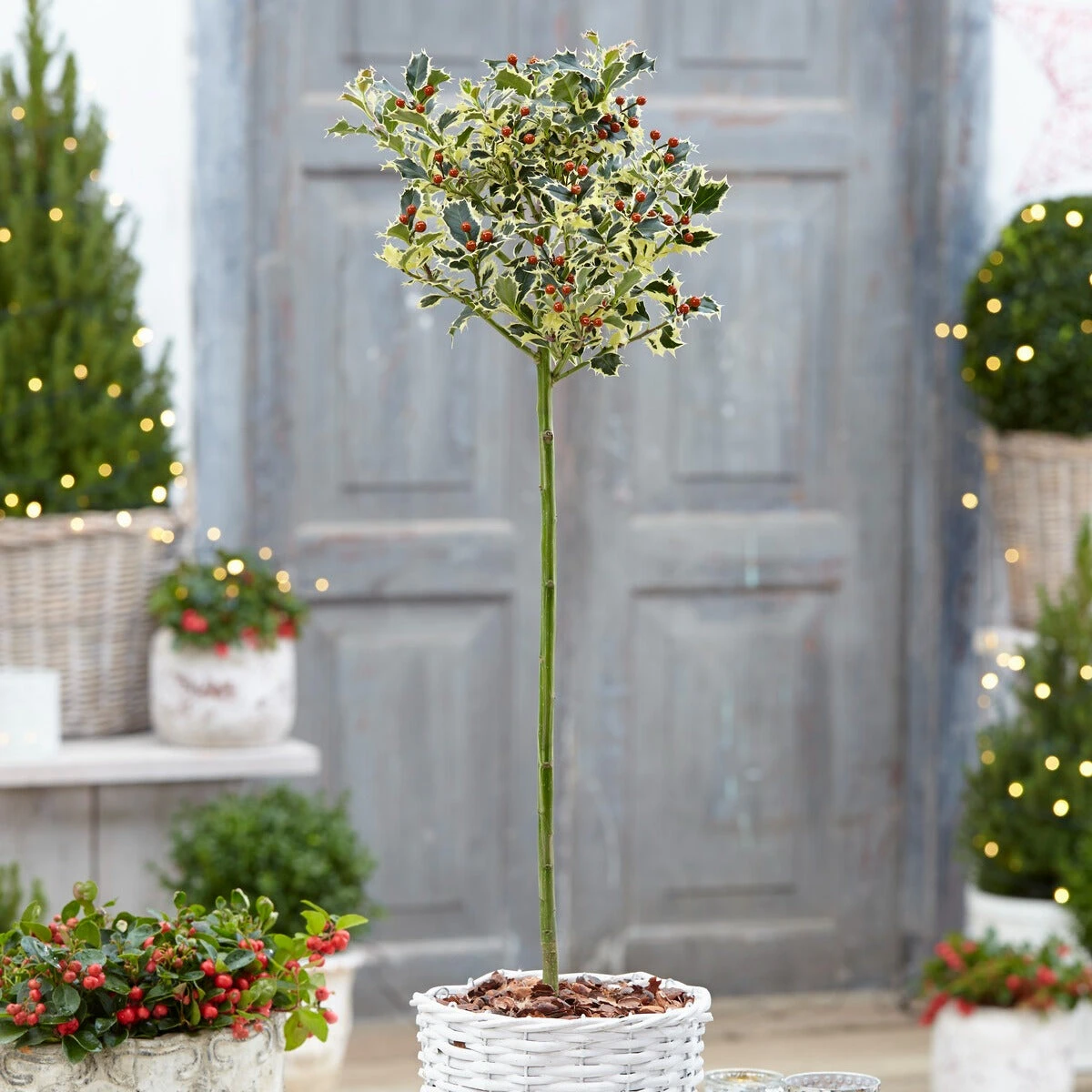 Le Houx argenté sur tige est un arbuste au look attractif, non seulement grâce à son feuillage époustouflant, mais également grâce à la beauté et à l’abondance de ses petites fleurs. Il se prête exceptionnellement bien à la décoration des maisons pour les fêtes de fin d’année, notamment à Noël. Originaire des sols acides et argilo-humifères d’Europe, d’Afrique du Nord et d’Asie Mineure, il décore tous les jardins, qu’il soit planté isolément ou en haie. Saviez-vous que, chez les Romains, le houx était offert aux jeunes mariés en synonyme de vœux de bonheur et de félicitations ? Aujourd’hui, l’espèce Ilex aquifolium et ses dérivés sont les plus cultivées comme Houx de Noël que l’équipe Willemse vous recommande pour décorer vos habitations lors des fêtes de fin d’année. Ce genre de plante est un arbuste ligneux, à écorce gris pâle et lisse. À maturité, il peut atteindre 4 à 6 mètres de haut. Quant à sa longévité, celle-ci peut aller au-delà de 100 ans. Il croît sur tous les sols et s’adapte à tous les climats, même les plus capricieux.